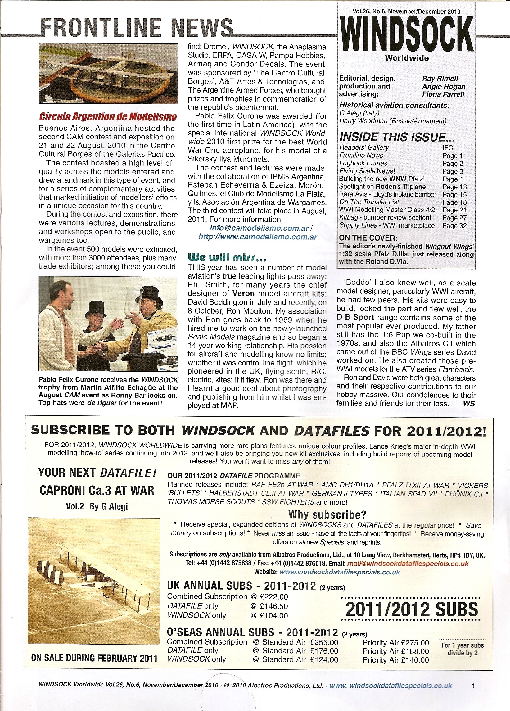 El excelente trabajo realizado por Pablo Curone, modelista independiente, un Sikorsky Ilya Muromets 1:72 de ICM, con muchísimo trabajo adicional, se hizo acreedor a este muy cotizado galardón para Aeroplanos de Primera Guerra Mundial; el que no solamente es el tercer premio instituido por Windsock Worldwide Magazine en todo el mundo, sino que también es el primero en ser entregado en Latinoamérica.